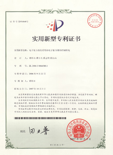 2006 年:數(shù)顯閉環(huán)式電子張力器研發(fā)成功,同年被評(píng)為東莞市民營科技企業(yè),