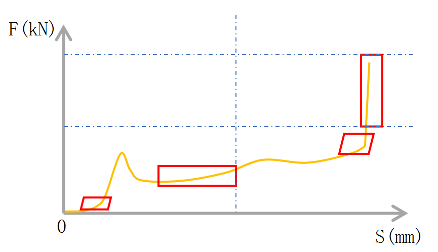 使用位置模式,將電機轉子軸垂直壓入轉子鐵芯及蓋板,經歷接觸起力-壓裝平穩-壓裝末端-壓裝極限四個階段,如下圖。