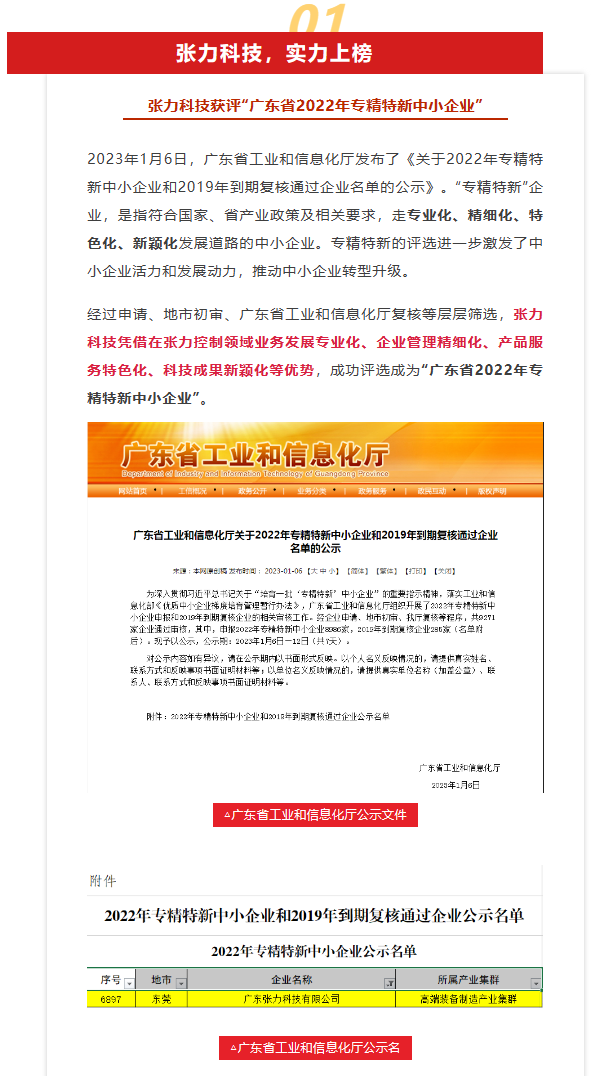本次張力科技入選,成為廣東省2022年專精特新中小企業(yè),實(shí)至名歸!