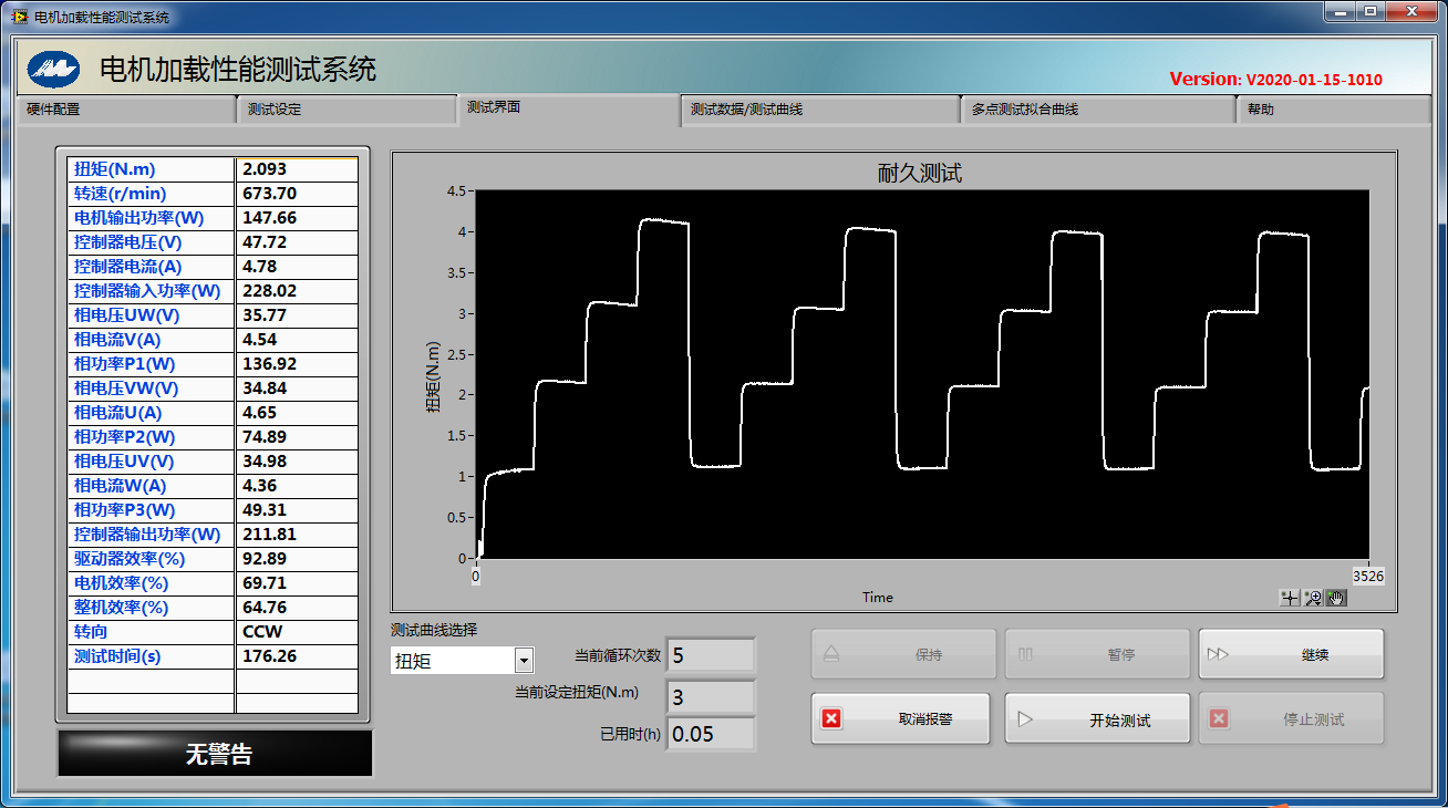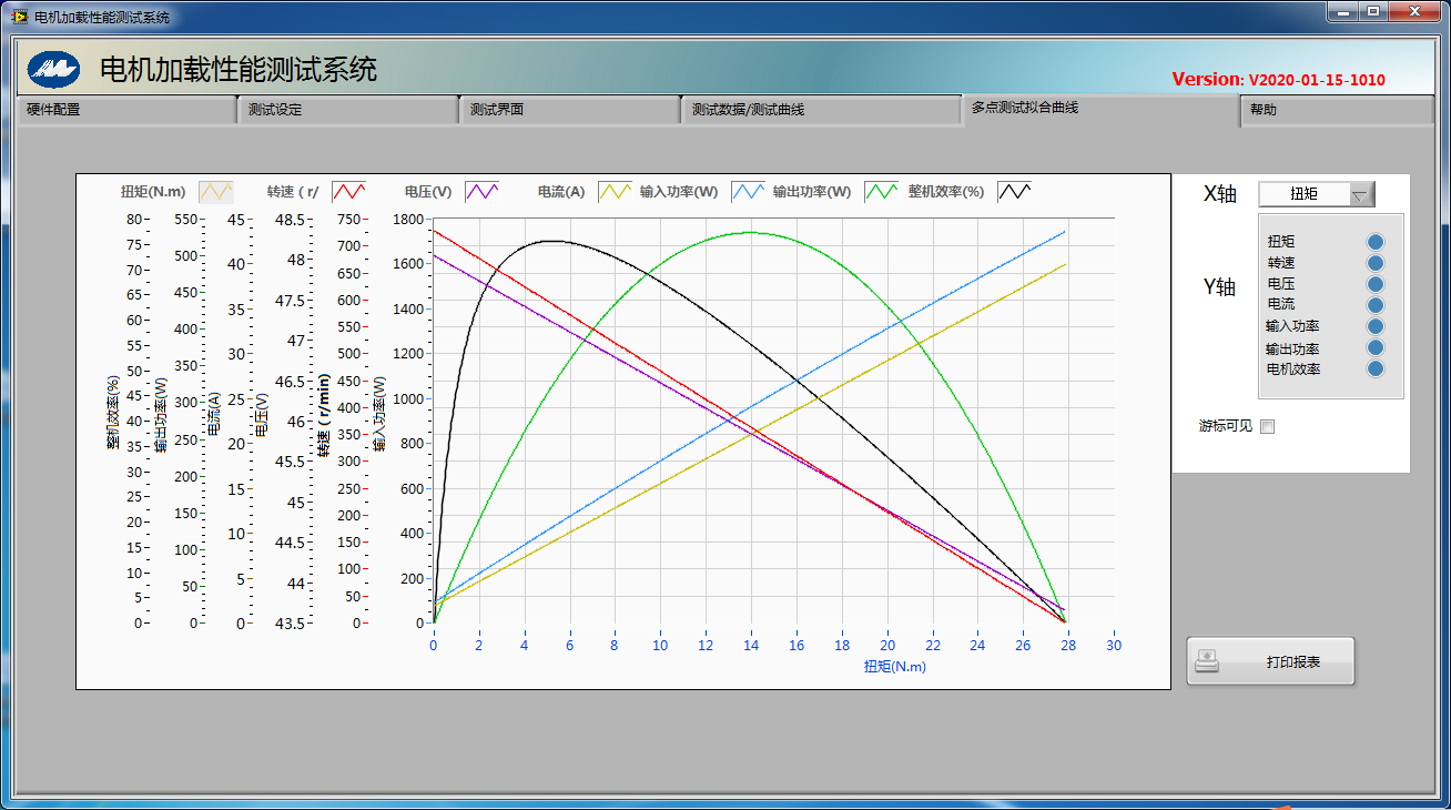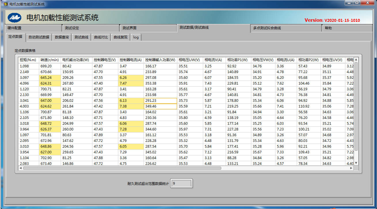 深圳某汽車制造廠定制的水泵電機綜合性能測試系統(tǒng)C0-MTHD284BYD是一套用于測試無刷電機的前端直流電壓、電流、轉速、轉矩、功率p1、p2、p3、效率,以及無刷電機驅動器功率分析。測試結果匯總包含空載點、堵轉點、最大轉矩點、最大輸出點,最大功率點、額定點(用戶自己定義轉矩),本套系統(tǒng)配有3個測功機(300mNm/3Nm/28Nm)且三個測功機之間可以通過轉換器與上位機控制實現(xiàn)自由轉換,通過PA2000mini 功率分析儀采集電機的扭矩轉速及驅動器的輸入輸出電壓電流,軟件是根據客戶的需求進行定制化開發(fā),整套系統(tǒng)交付客戶使用后獲得客戶的高度好評。